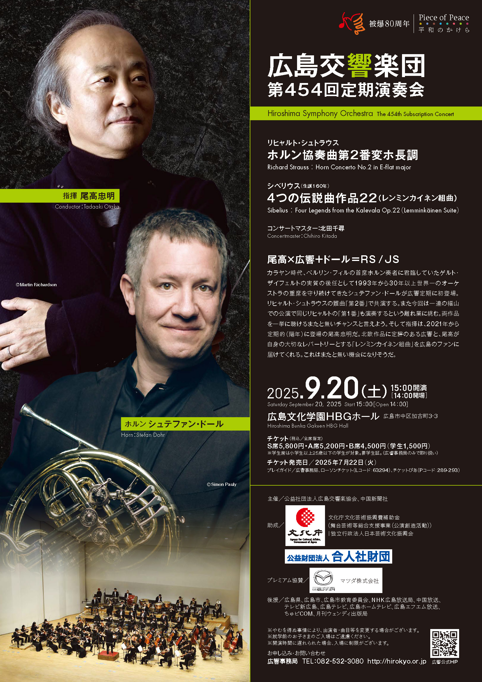 | 問い合わせ | 広響事務局 082-532-3080 (平日9:00~17:20受付) |