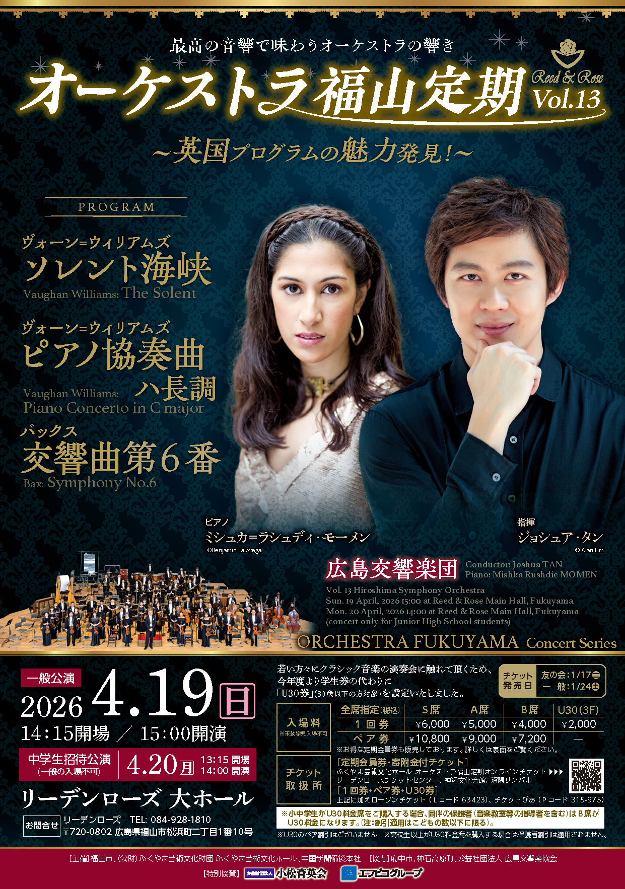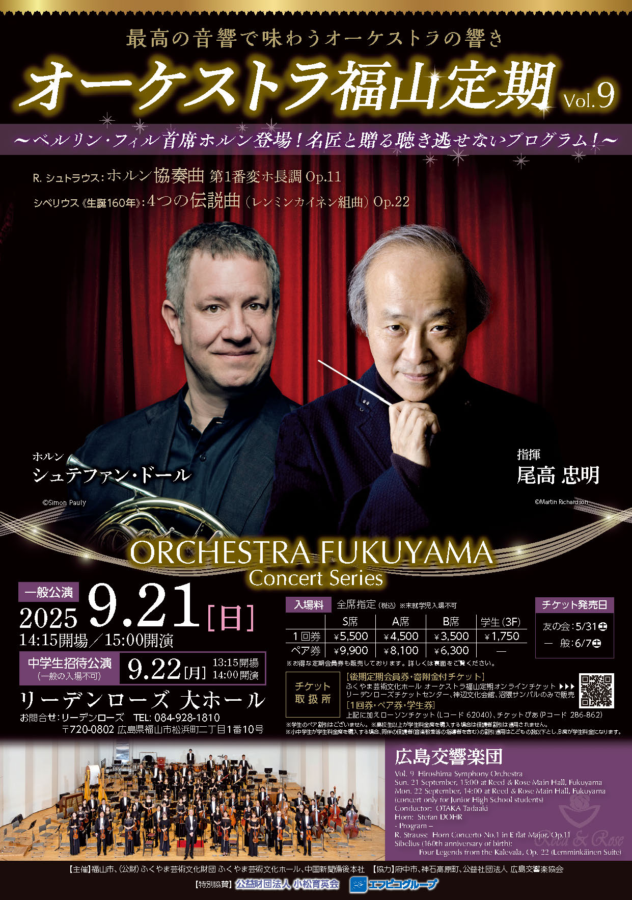 | 取り扱い | ふくやま芸術文化ホール オーケストラ福山定期オンラインチケット ローソンチケット、チケットぴあ ※広響事務局での取り扱いはありません |