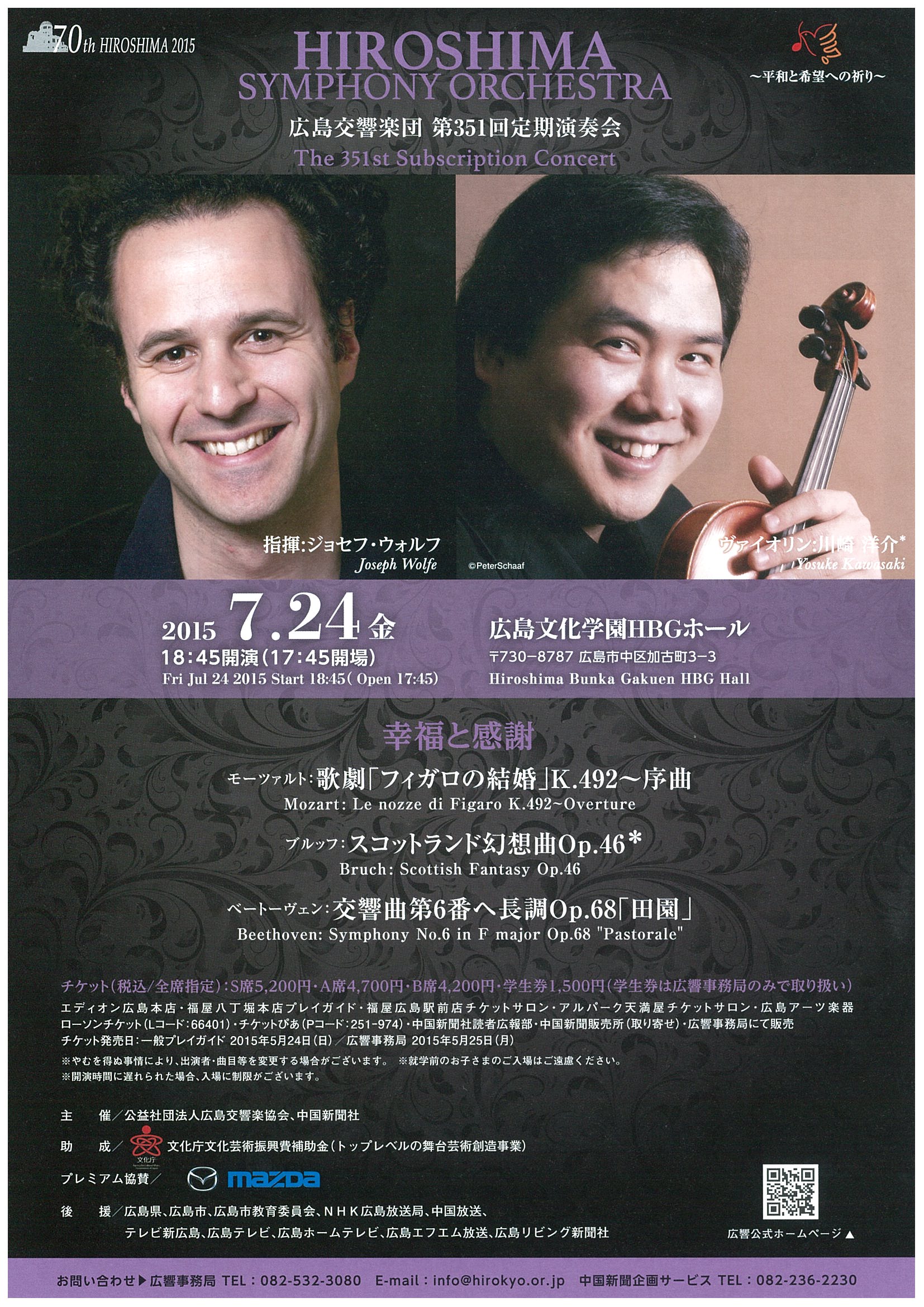 モーツァルト:歌劇「フィガロの結婚」K.492~序曲 ブルッフ:スコットランド幻想曲Op.46 ベートーヴェン:交響曲第6番ヘ長調Op.68「田園」
