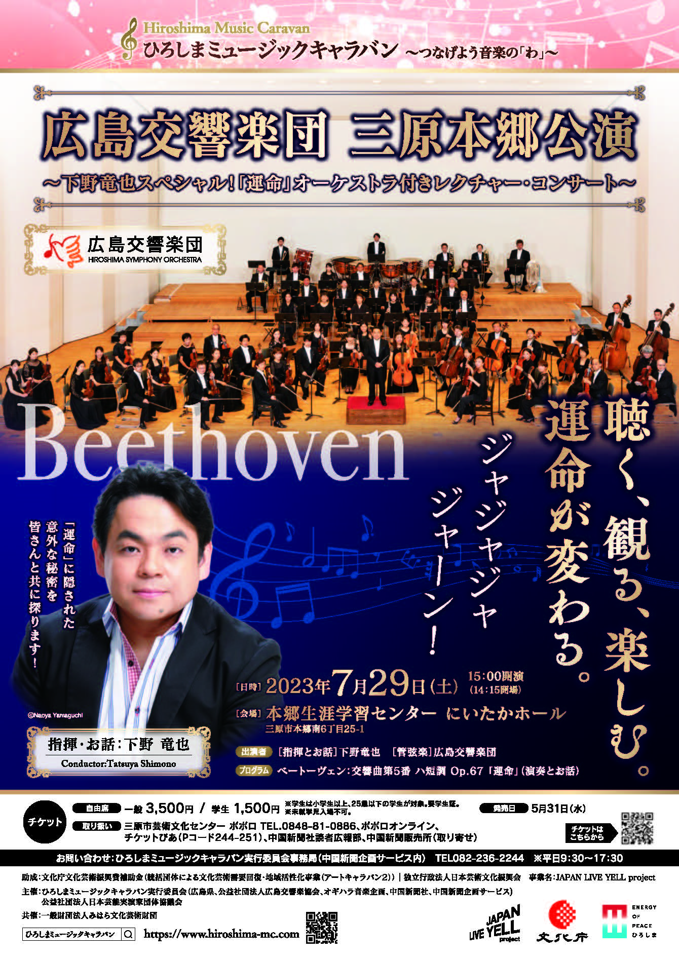 | 備考 | 主催/ひろしまミュージックキャラバン実行委員会(広島県、公益社団法人 広島交響楽協会、オギハラ音楽企画、中国新聞社、中国新聞企画サービス)、公益社団法人日本芸能実演家団体協議会 |