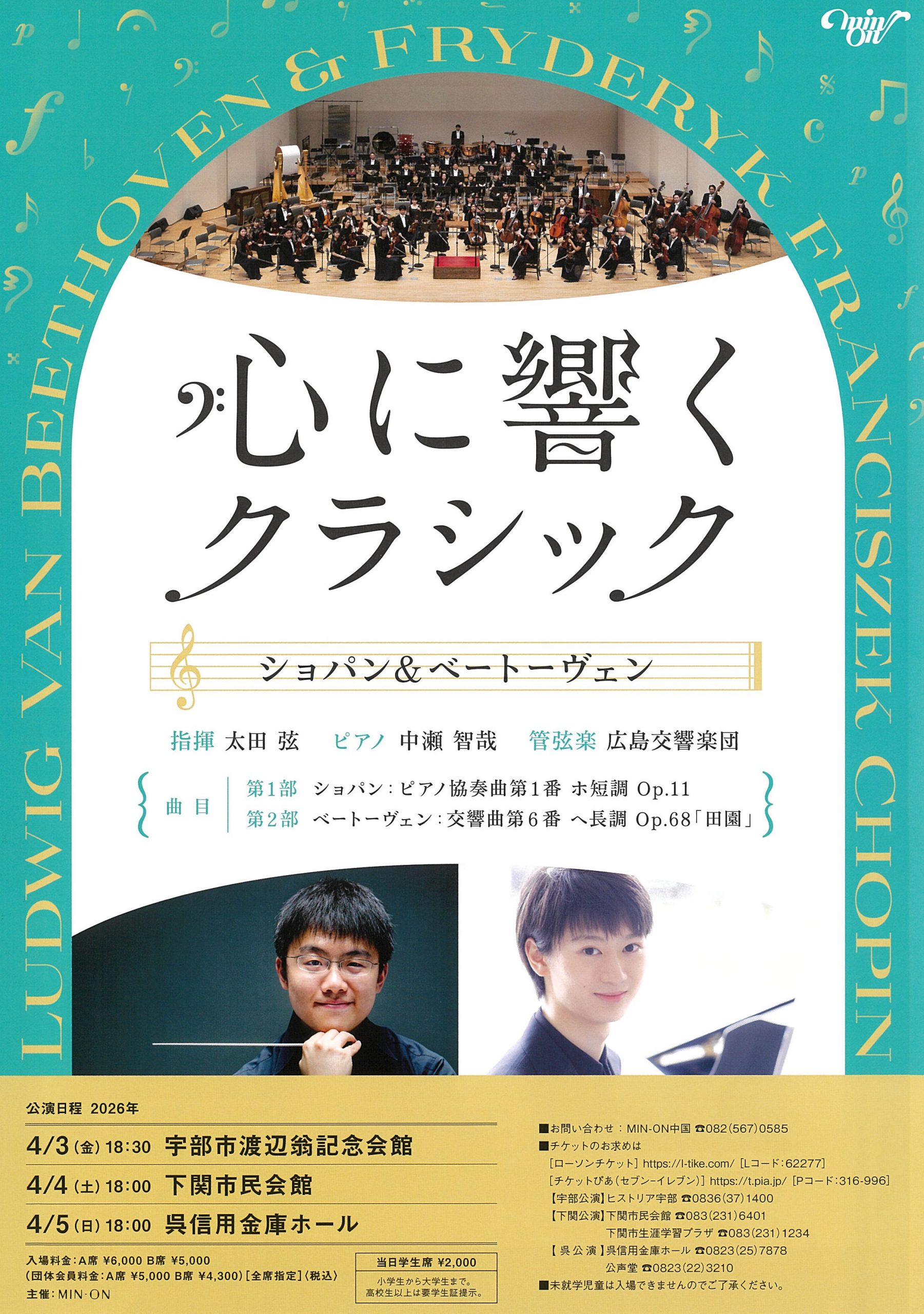 | 曲目 | ショパン:ピアノ協奏曲第1番ホ短調 Op. 11 ベートーヴェン:交響曲第6番ヘ長調 Op. 68「田園」