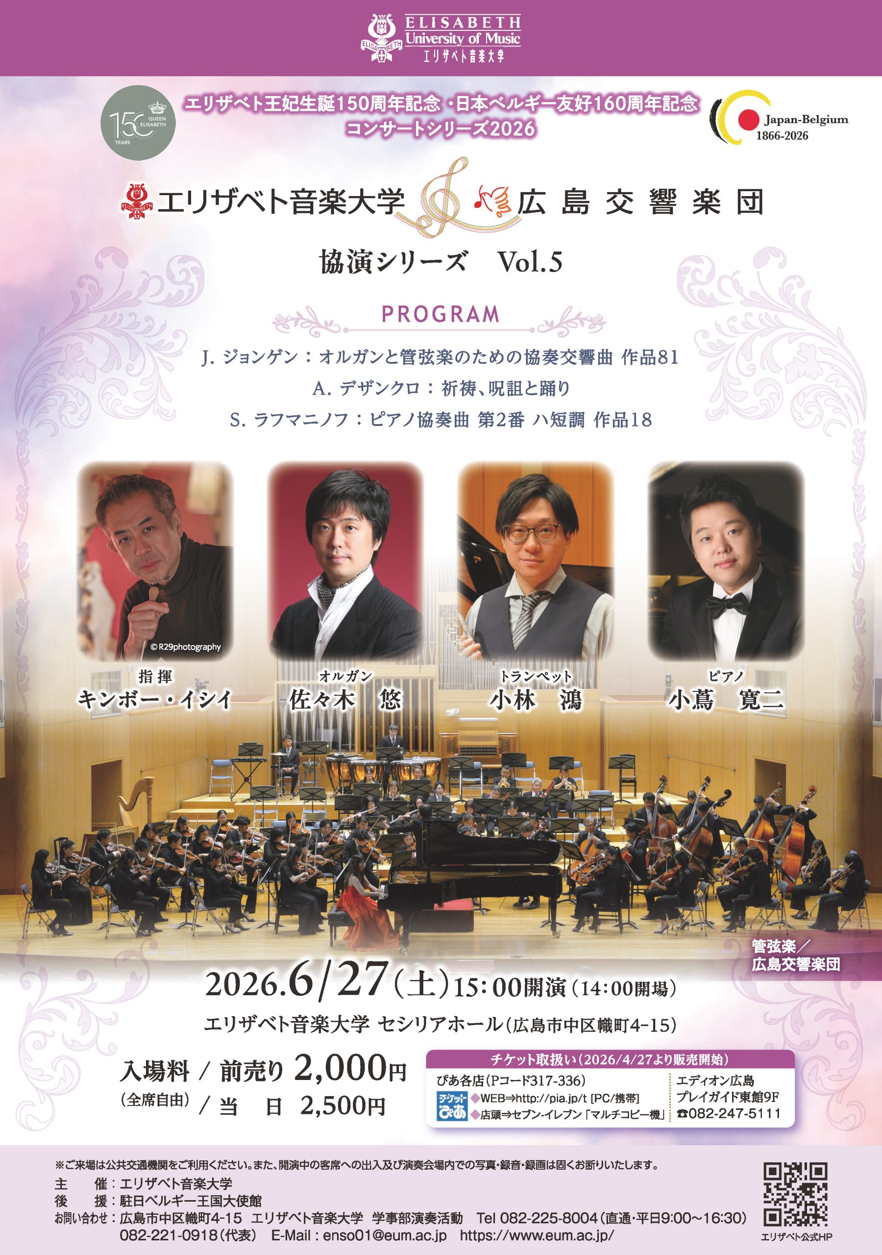 | 問い合わせ | エリザベト音楽大学 学事部演奏活動 TEL 082-225-8004 ※詳細情報はリンク先をご覧ください。 |