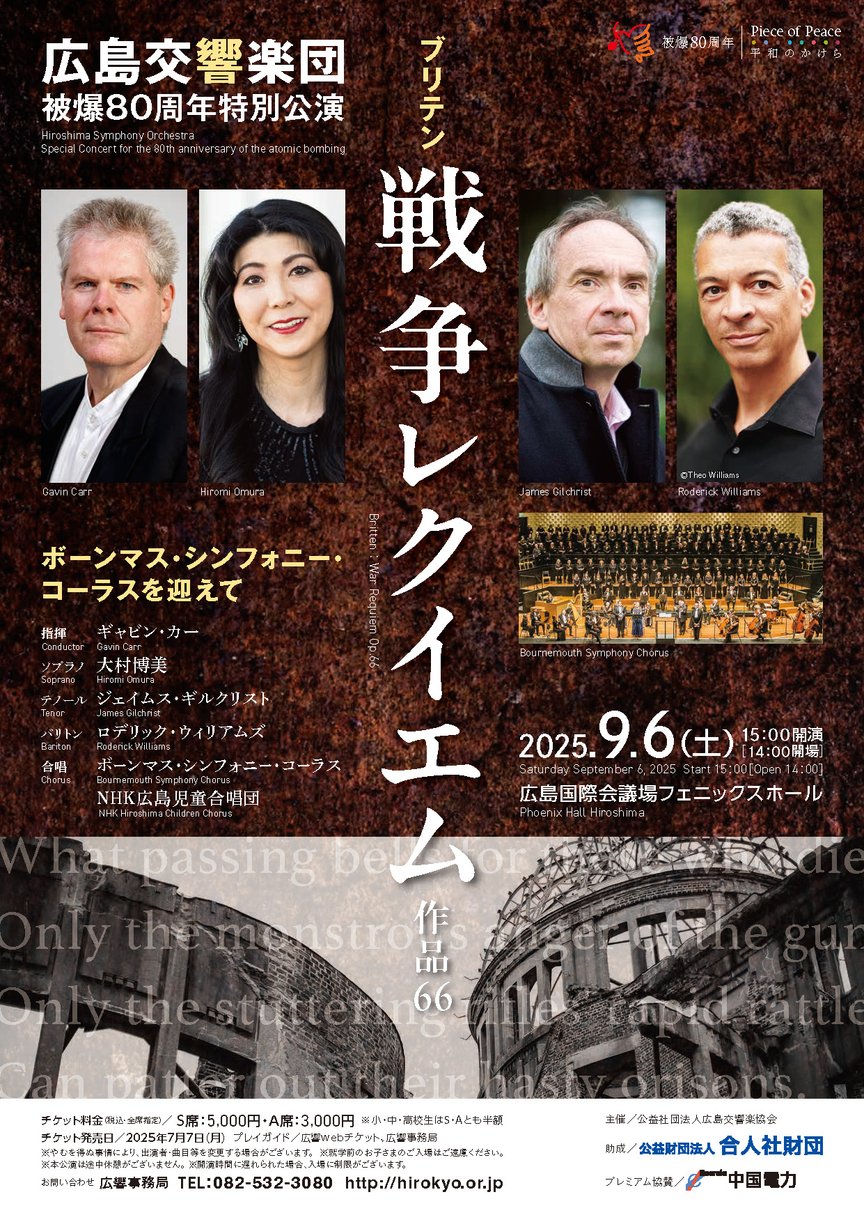 | Artist | Conductor:Gavin Carr Soprano:Hiromi Omura Tenor:James Gilchrist Bariton:Roderick Williams Chorus:Bournemouth Symphony Chorus, NHK Hiroshima Children Chorus |