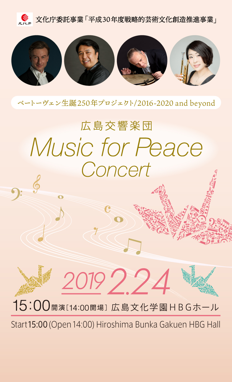 広島交響楽団のテーマ(キャッチフレーズ)である「Music for Peace」を冠し、海外の優れた音楽家と共に平和への想いを込めたコンサートを世界へ発信するプロジェクトとして、2016年度よりスタート。平和の祭典、東京オリンピック・パラリンピックが開催され、戦後75年という節目の年でもある2020年、そしてその先の未来へ向けた音楽による希望のメッセージを発信します。