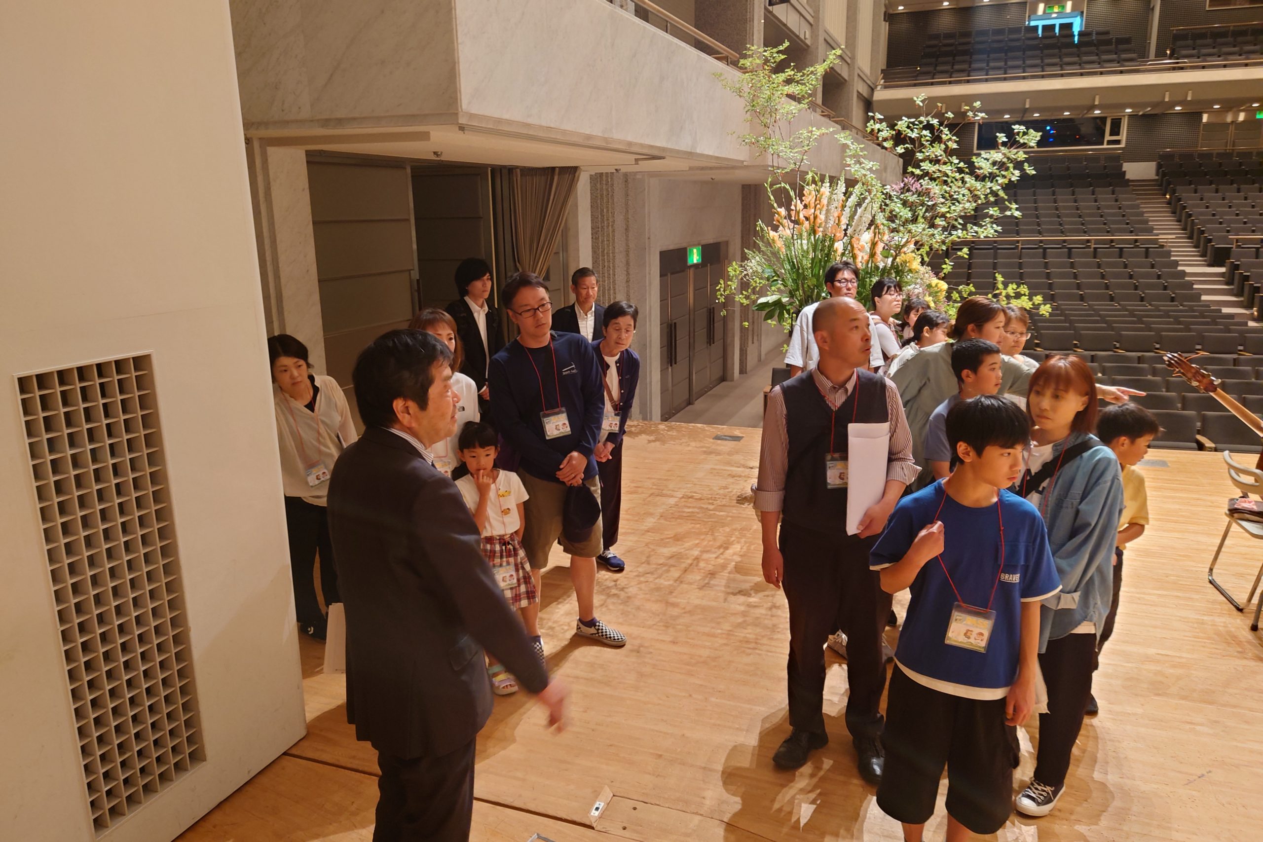 普段は入れない開場前のホールで、リハーサルの見学と舞台裏を見学するバックステージツアーを体験いただいた後、ご家族で演奏会をお楽しみいただきました。オーケストラの演奏を聴くのは初めてという方もいらっしゃいましたが、最後まで熱心に耳を傾けてくださいました。